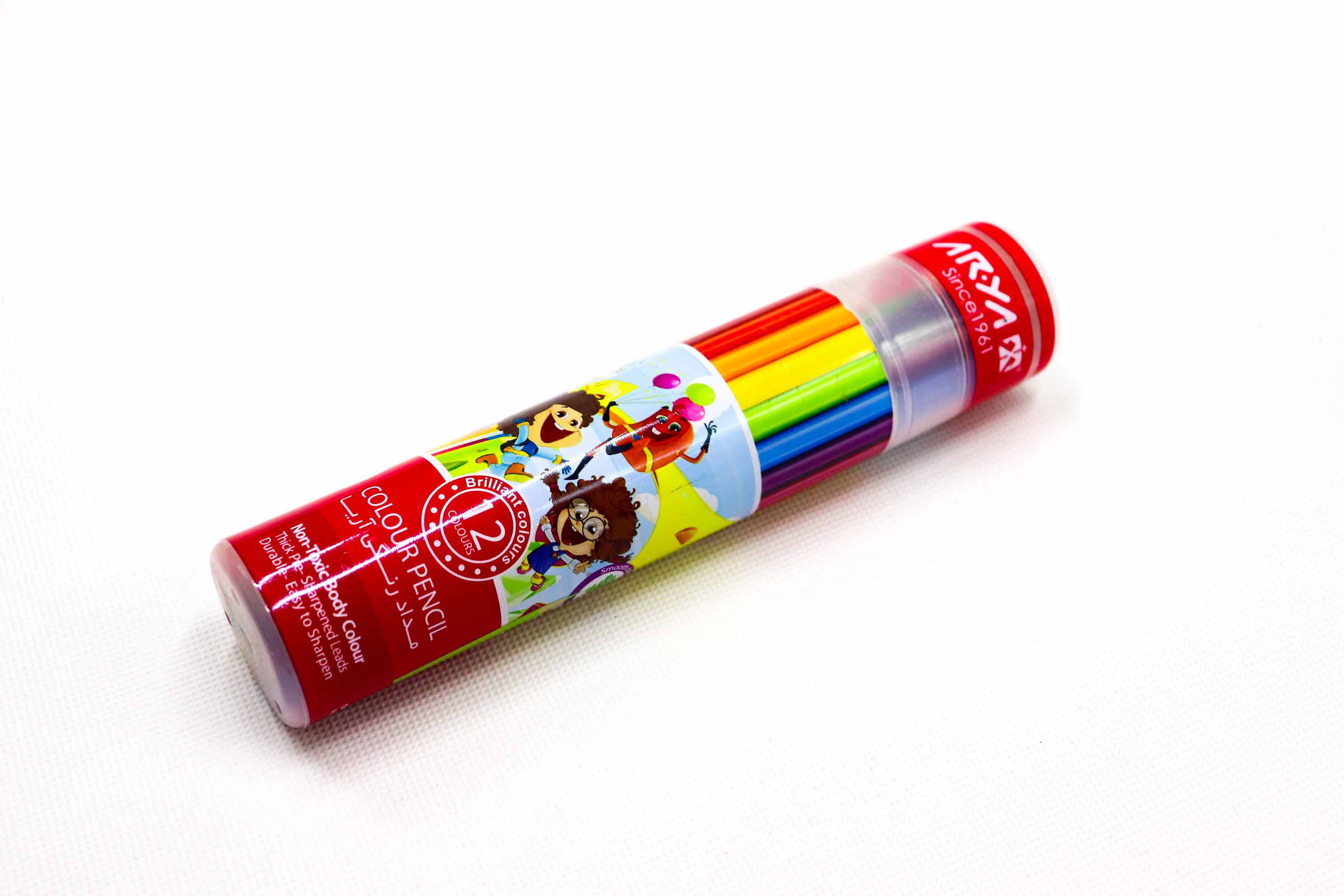 مداد رنگی 12 رنگ جعبه لوله ای آریا